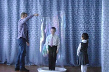 Пузыри разных размеров и форм, которые переливаются всеми цветами радуги. В шоу участвовали не только ведущие, но и дети, они были не только зрителями, но и участниками представления. Шоу интерактивно, и дети принимают в нем самое непосредственное участие, помогая выдувать пузыри и являясь участниками некоторых трюков.