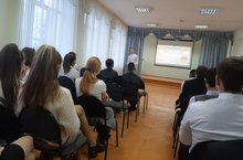 Сегодня состоялся "профориентационный классный час", который провели студенты 2х и 3х курсов Казанского педагогического колледжа, Российского института театрального института "Гитис", Казанского федерального университета. Учащимся 10, 11х классов рассказали о высших учебных заведениях, о способах поступления и о специальностях которым там обучают. Более подробно ученики узнали о профессии геодезист.
