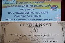 8.02.2019г. ученик нашей школы, Козиков С.( Руковоритель-Николаева А.Р.) принял участие в городской НПК "Интеллект. Карьера".