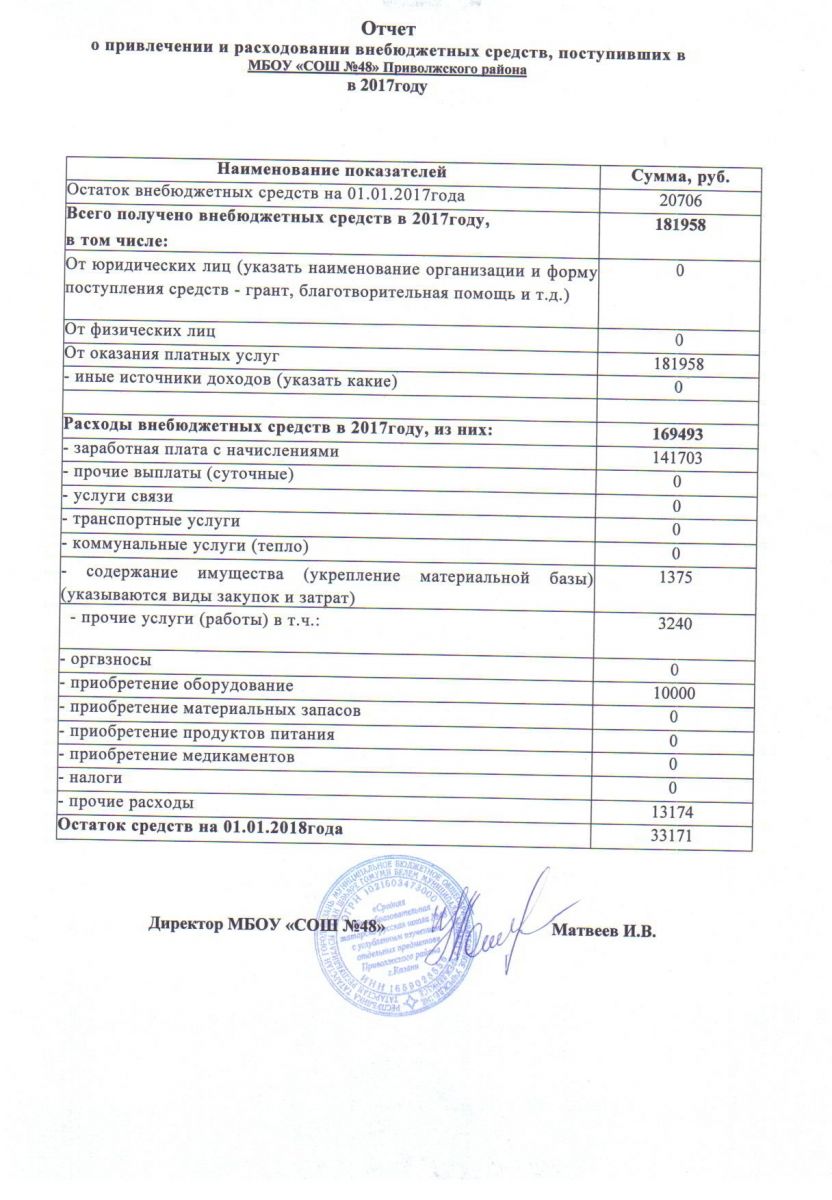 Отчет о поступлении и расходовании внебюджетных средств за 2017 год