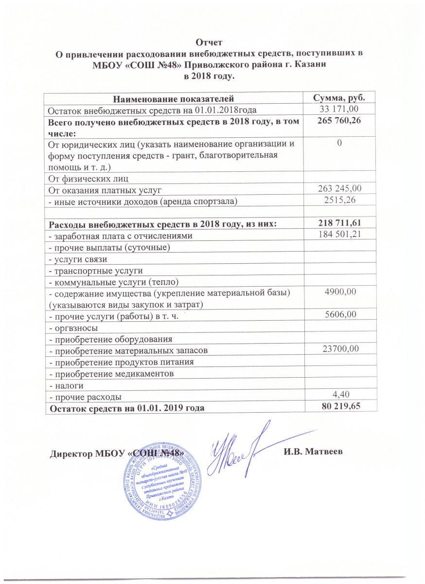 Отчет о поступлении и расходовании внебюджетных средств за 2018 год