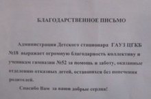 Выражаем огромную благодарность всем учащимся, классным руководителям 8-11 классов, а также их родителям за оказанную помощь в сборе средств гигиены для отделения отказных детей при детском стационаре поликлиники№18.