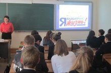 22 сентября в гимназии в рамках месячника профилактики асоциальных явлений в 8а классе состоялся классный час на тему «Я выбираю жизнь», посвященный профилактике употребления ПАВ. Классный руководитель Ахмадуллина Л.Р. вместе с ребятами разобрали ряд жизненных ситуаций, как принять правильное решение в том или ином случае и, главное, педагог правильно ориентировал ребят на ведение здорового образа жизни, отметив, что только здоровый человек может быть успешным.
