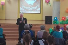 30 апреля в гимназии прошёл ежегодный традиционный митинг для ветеранов и жителей микрорайона, посвящённый Дню Победы. Мероприятие подготовлено силами педагогов ХЭЦ и учащихся нашей гимназии. С приветственным словом к присутствующим обратился Делов Анатолий Тимофеевич – малолетний узник концлагеря. Вниманию гостей были представлены военные песни, народные танцы. По окончании концерта учащиеся 5б класса возложили цветы к памятнику М.Сыртлановой и сделали памятное фото с ветераном Великой Отечественной войны. -