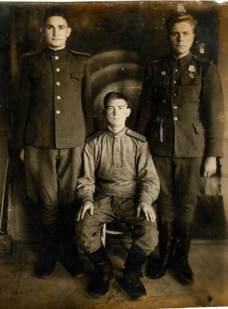 Чихирев Михаил Александрович (в центре) с другом и племянником в отпуске с.Пестрецы, 1944г.