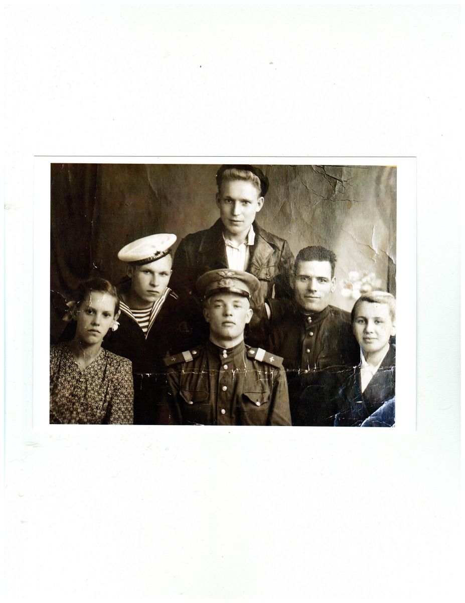 Моисеев Андрей Никанорович (в морской форме) с братом и друзьями 1948г.