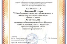 Поздравляем! Ученицы 4а класса Хасанова Алия и Гарифуллина Самира стали лауреатами 2 и 3 степени в Республиканском конкурсе изобразительного и декоративно- прикладного творчества " Чудеса из ларца". Педагог : Горностаева Елена Ивановна. 24.03.2023