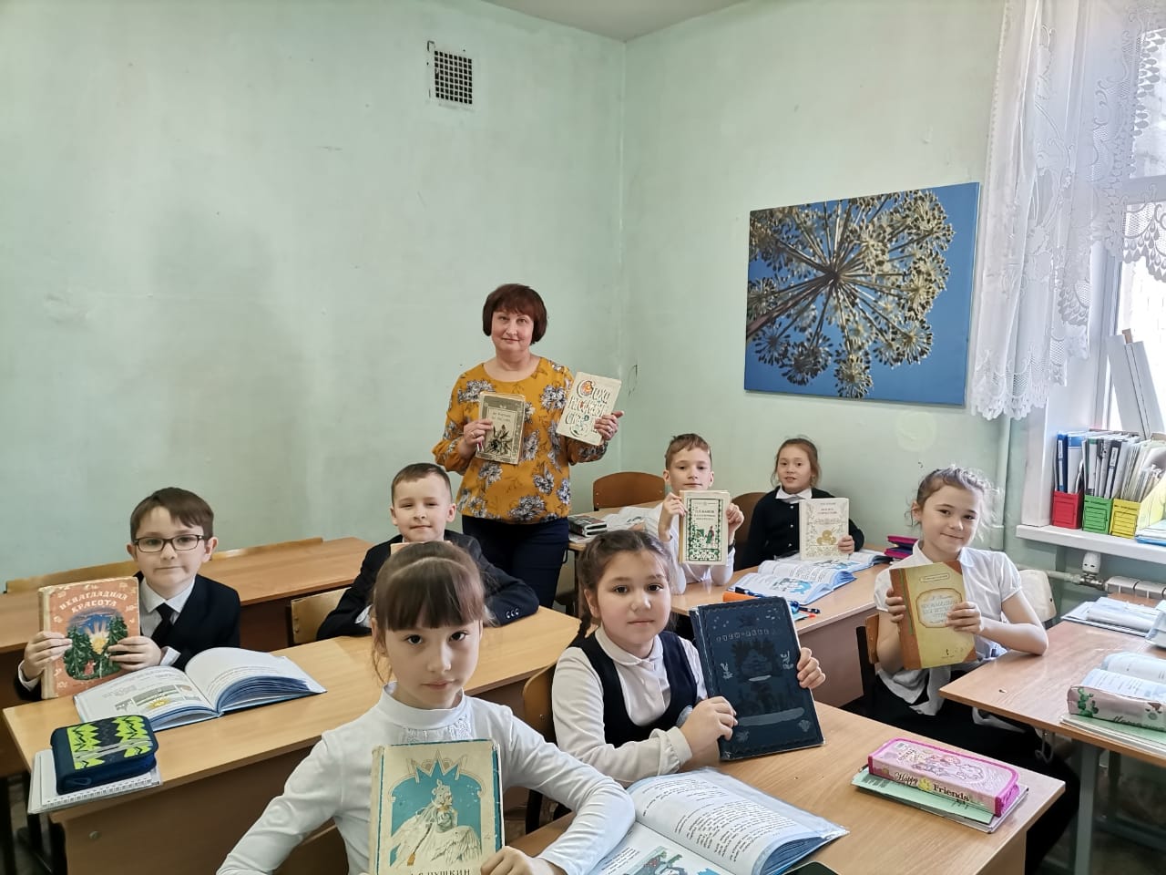 Габдулла Тукай әсәрләренә багышланган рәсем конкурсы Мәктәптә Габдулла Тукай әсәрләренә багышланган рәсем конкурсы булып узды. Укучылар шагыйрьнең яраткан әкиятләренә, шигырьләренә рәсемнәр ясап килделәр. Китапханәче Татьяна Николаевна 2 нче сыйныф укучылары өчен “Минем яраткан әкиятләрем” темасына викторина уздырды. Рус һәм татар язучыларының күренекле әсәрләре белән таныштырды.