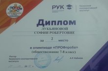 2 место-Лукьянова София, ученица 8 класса (учитель истории - Марданова Э.Ш.)