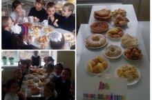 сегодня ученики 1 класса поучаствовали в школьном мероприятии под названием "день нициональной кухни". принесли, приготовленные вместе с родителями, блюда. мероприятие закончилось дружным чаепитием