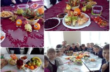 сегодня для учеников начальной школы прошла выставка "Дары осени". на ней они представили свои поделки из овощей и фруктов, а так же провели защиту "проектов"- салатов ез майонеза :)