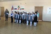 Сегодня в нашей школе прошел смотр строя и песни в начальной школе. Ученики 2-4 класса исполнили свои любимые военные песни, а первоклассники смотрели и учились тому, как выступать.
