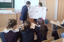Сегодня в нашей школе прошла встреча с представителем организации "Реальная астрономия", который подробно и интересно рассказал учителям начальных классов о своей программе, представляющей собой курс интерактивных занятий с учениками 1-4 классов по астрономии, на которых ребята не только слушают и знакомятся с миром космоса, но и могут самостоятельно с помощью джойстика путешествовать по галактикам и даже прилететь во двор своей школы.