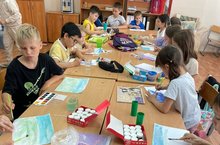 После завтрака педагог из ЦДТ "Олимп" Марат Вакасович организовал спортивное мероприятие "Весёлые старты". Участвуя в " Весёлых стартах" дети смогли почувствовать себя большой спортивной единой семьёй. Во второй половине дня педагог из ДПЦ " Молодость" Елена Викторовна провела "Мастер -класс по изготовлению божьей коровки из картона и бумаги". -