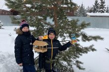 Подкормка птиц зимой , пожалуй, самая эффективная природоохранная мера . Чтобы помочь птицам , ученики 4б класса создали на пришкольной территории « птичью столовую».