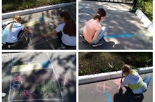 3 день пришкольной лагерной смены прошёл под девизом: «Жить безопасно-здорово!» Ребята приняли участие в конкурсе рисунков на асфальте на тему: «Правила дорожного движения»