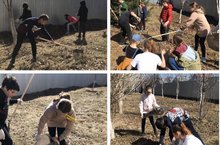 Сегодня учащиеся нашей школы вышли на уборку пришкольной территории.