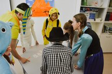 Сегодня учащиеся 6Б: Дарина Евграфова и Анастасия Березова, под руководством учителя истории и обществознания Руслана Масхутовича Халиуллова участвовали в костюмированном фестивале настольных игр "День знатока", который прошел в международном полингвальном детском саду "Бала-сити"