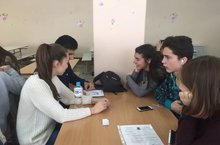 Сегодня учащиеся 10а класса приняли участие в полуфинале городского турнира игры «Что? Где? Когда?» среди школьников.