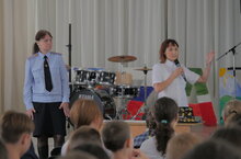 5 октября в стенах нашей школы прошел профессиональный праздник «День учителя». В этом году вместо концерта прошла праздничная QWIZ-игра, где учителя и ученики 9-11 классов состязались в интеллектуальном турнире. Перед открытием праздничной игры с поздравительными словами выступил директор школы Виталий Владимирович Стахеев.