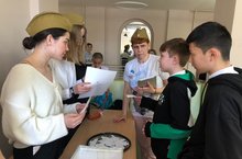 28 апреля учитель истории и обществознания Нигматуллина К.И. совместно с учениками 7 Б класса провела акцию "Георгиевская ленточка". На протяжении двух часов любой желающий мог ответить на 1 из 50 вопросов о Великой Отечественной войне и получить частичку награды - Георгиевскую ленточку. Активное участие в акции приняли учащиеся начальной школы, 5А, 6Б, 7Б, 8А, 9М, 10А класса. В фойе школы звучали песни военных лет, были флаги РФ и РТ, большое полотнище Георгиевской ленты. Сама акция впервые состоялась в нашей стране в 2005 году и проводится уже в 18 раз. Во всех регионах страны Волонтеры Победы раздают их на центральных улицах, площадях, в торговых центрах. Микрорайон Теплоконтроль - это рабочая окраина, здесь нет торговых центров и площадей, но не смотря на это школа 114 предоставляет возможность получить желанный символ великой Победы.