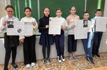 Вернувшись в родную школу, девочки провели беседу в 3А классе, раздали листовки и уже детскую суточную норму хлеба - всего 100 грамм!