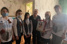 В рамках ежегодной акции "10 дней до Победы" - "Ветеран, мы рядом!" учитель истории и обществознания Нигматуллина К.И. совместно с активистами школы посетили ветерана Великой Отечественной войны - Нину Васильевну. Для ветерана ученики школы подготовили концерт - спели песни прочитали стихи и помогли по дому. Нина Васильевна, была рада маленьким гостям, после выступления, она рассказала им военные истории и дала напутствие на будущее - "Всегда любить свою родину и помнить подвиг людей, благодаря котором мы живем в мирное время"