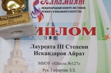 Поздавляем Искандерова Айрата Лауреата 3 степени Международного конкурса -фестиваля речевого и вокального икусства, руководитель Гафарова З.З.