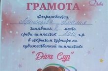Поздравляем ученицу 2б класса Минсафину Эмилию с победой в открытом турнире по художественной гимнастике! Молодец!