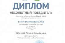 Поздравляем победителя олимпиады Винкинд абсолютного победителя Салихову Ясмину.