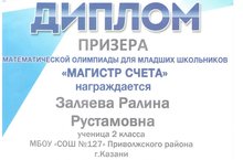Поздравляем победителя олимпиады Магистр счета призер Заляева Ралина