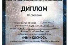 Поздравляем команду 8 а класса с дипломом 3 степени интеллектуальной игры "Мы и космос", посвященной Международному Дню Космонавтики. Педагог - Курочкина Ю.А.
