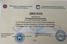 Поздравляем Гилязиеву Камиллу с Дипломом на XIV Международнолй найчно-практической конференции "Тюркская лингвокультуралогия: проблемы и перспективы", руководитель Гилязиева А.Н.