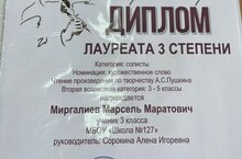 Поздравляем Миргалиева Маоселя с Дипломом лауреата 3 степени Республиканского конкурса " В созвездии Пушкина и Тукая", руководитель Сорокина А.И.