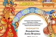 Поздравляем Ферафонтову А.И. с Дипломом за 1 место в Республианском конкурсе творческих работ "Чудесных сказок хоровод"
