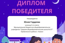 Поздравляем победителей Всероссийской онлайн-олимпиады "Безопасные дороги" в рамках нацпроекта "Безопасные качественные дороги"! Гордееву Юлию 5 класс, учитель Ферафонтова А.И.