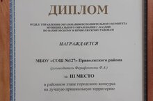 Порздравляем коллектив МБОУ "Школа№127" ( руководитель Ферафонтова Ф.А.) с диплом 3 степени в районном этапе городского конкурса за лучшую пришкольную территорию