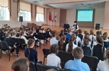 Сегодня перед учащимися начальной школы выступили инспектора по пропаганде дорожного движения.