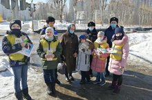 ведущим специалистом отдела профилактики ГБУ БДД Хайруллиной С. С., инспектором ПДН Баязитовой Г. Ф. напомнили пешеходам о правилах дорожного движения, поймали нарушителей ПДД, раздавали светоотражающие элементы, газеты "Добрая дорога детства" и памятки по безопасности на дорогах, памятки и наклейки для родителей.