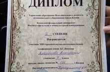 Ученица 8 «А» класса Алимпиева Анастасия заняла 3 место в XIII городской научно-исследовательской конференции имени Д. С. Лихачева. Преподаватель подготовивший победителя - Хуснуллина А.Р.