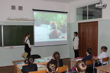 В рамках "Неделя добра" активисты школы на переменах показывали мультфильмы ученикам начальной школы.