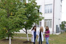 Учащиеся 8-9 классов в составе трудовой бригады облагораживают участок.