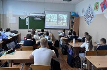 Советник директора по воспитанию и взаимодействию с детскими общественными объединениями Рябова О. А. вместе с председателем Совета Первых Гараевой Дианой провели беседу с детьми о знаменательной дате и показали фильм "Наследники Победы".