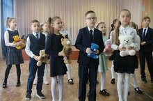Занятия в школе начались с поднятия двух государственных флагов - России и Татарстана и под исполнение двух гимнов. Это торжественное мероприятие проводилось в спортивном зале школы, флаги в помещение внесла знамённая группа отряда Юнармии имени Героя Советского Союза В.Д. Халева.