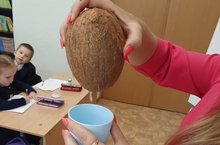 На занятии ребята узнали, что кокос - важный фрукт, который используется в нескольких целях. Кокос обеспечивает пишу, питание, увлажнение и другие полезные вещи в нашей повседневной жизни. Поэтому его ещё называют « Деревом жизни». День кокоса отмечается в честь его значения в человеческой жизни. Кокос содержит белок, несколько важных минералов и небольшое количество витаминов группы В.