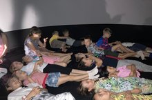 В нашем пришкольном лагере был конкурс рисунков на асфальте, итоги которого мы подведём в конце недели. А во второй половине дня к нам пришли гости со зрелищно-развлекательным мероприятием в мобильном планетарии. -