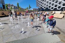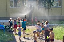 У нас сегодня в пришкольном лагере был День Нептуна. Солнце светит, температура +35, и мы с превеликой радостью играем, плескаемся в воде.???? Под брызги воды попали практически все☺️ А после вкусного обеда к нам в гости пришли научное химическое шоу. Было очень познавательно и интересно.