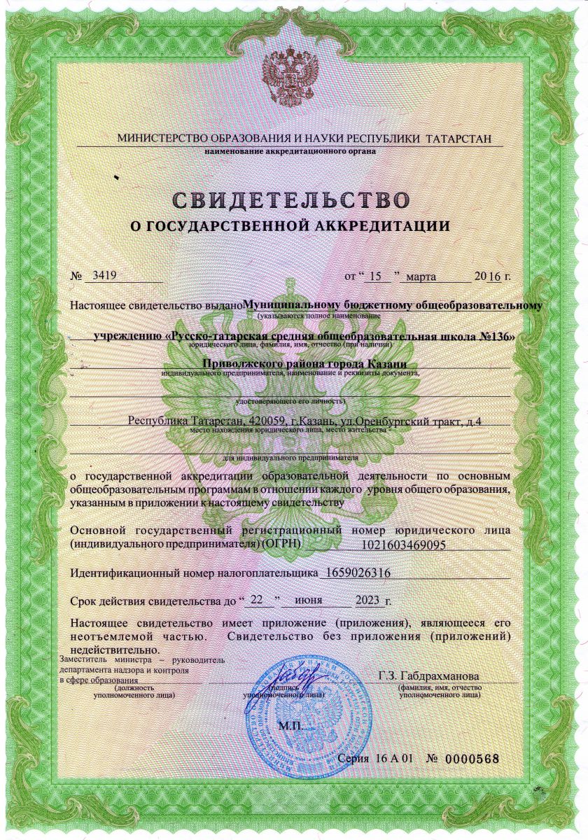 МБОУ «Русско-татарская средняя общеобразовательная школа №136» Приволжского района города Казани