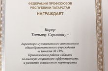В актовом зале Центра детского творчества Вахитовского района состоялась отчетно- выборная конференция территориальной профсоюзной организации Вахитовского и Приволжского районов, в работе которой приняли участие: председатель рескома Ю.П.Прохоров, главный специалист рескома Т.А.Андреева, зам.главы Администрации О.А.Дроздецкая, начальники отдела образования М.З.Закирова. На конференции присутствовали приглашенные-директора школ, заведующие ДОО, члены Совета ветеранов, Совета молодых педагогов. Юрий Петрович дал высокую оценку деятельности организации, рассказал о направлениях деятельности республиканского Профсоюза. Ольга Александровна Дроздецкая поблагодарила за сотрудничество, выразила надежду на дальнейшее взаимодействие. Минзалия Загриевна рассказала о совместной работе с РК профсоюза, подробно остановилась на развитии социального партнерства. В рамках конференции прошло вручение наград лучшим образовательным учреждениям г.Казани. Почетной грамотой Федерации профсоюзов Республики Татарстан за высокую социальную эффективность и развитие социального партнерства награждена директор гимназии Борер Татьяна Сергеевна.