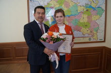 Вручение Почетной грамоты Министерства здравоохранения РТ ученице 9А класса Садыковой Екатерине.